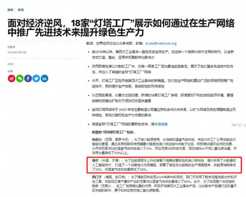 1月13日,世界经济论坛(以下简称WEF)公布第4批可持续灯塔工厂名单。此次可持续灯塔工厂共评选出3家,天津海尔洗衣机互联工厂代表全球洗衣机行业唯一入选。截至目前,可持续灯塔工厂已经累计公布13家企业名单,天津海...