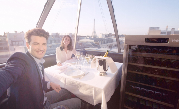 (图为海尔酒柜入驻埃菲尔铁塔旁五星级酒店餐厅)