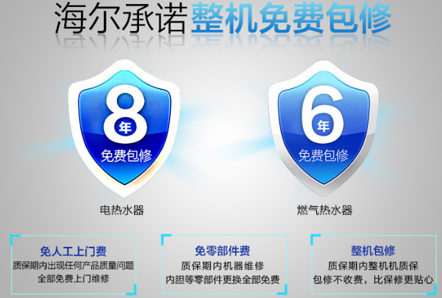 热水器作为耐用电器,需要专业的安装及售后保障,服务和品质是选择一个热水器品牌的重中之重,海尔下一代智能安全热水器推出了电热水器8年免费包修和燃气热水器6年整机免费包修服务,在国家规定使用年限内均可享受包括免人工费及零部件费用的优质服务。
