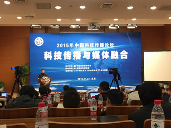 11月27日,由中国科技新闻学会主办的“2015年中国科技传播论坛”在中国科技会堂举行。中国科协党组成员、书记处书记王春法领导出席论坛并致辞。中华全国新闻工作者协会党组书记翟惠生,中央网信办网络新闻信息传播局副局长孙凯,光明日报副总编辑沈卫星,科大讯飞副总裁江涛分别作大会报告。论坛由中国科技新闻学会理事长宋南平主持。