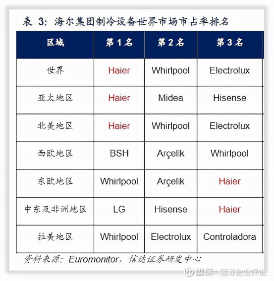 除了营收业绩的不断提升,市场的优势地位也是企业能否持续发展的关键条件。领先的市场地位更有利于与其他品牌竞争,实现更好的发展。海尔智家通过多年深耕与发展,已经在全球多国市场取得的优势地位。