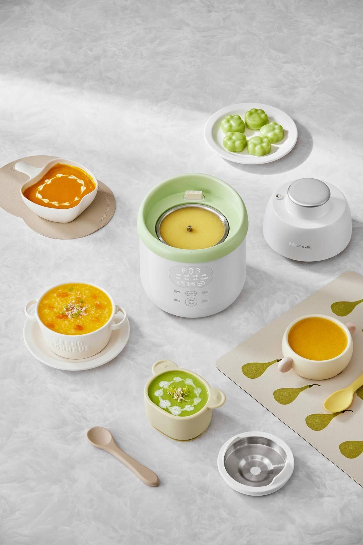 以爆款小熊电器蒸煮一体辅食机为例,该产品一举解决了步骤繁琐、安全担忧、口感粗糙、清洁麻烦等痛点。在制作宝宝辅食时,没有传统辅食机需先蒸煮后再拿来搅打的繁琐,产品可蒸煮搅打一体完成,一键操作,省时省力;内胆全316不锈钢食品级接触材质,不仅给宝宝用更安心,且导热好更高效;通过3层6叶刀头立体搅打,配合微压蒸煮,让辅食口感更细腻绵密、易吞咽,让宝宝好吸收、不胀气;智能分月龄设定,会精准匹配不同阶段宝宝的咀嚼需求,自适应调节辅食粗细程度。另外,搭配高温自清洁模式,清洗起来方便省心,避免了死角难清洗的麻烦。一台产品满足多种辅食制作需求,让新手爸妈也能轻松科学育儿、解放双手。