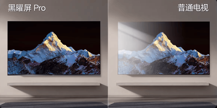 这块屏幕表面采用 和防眩工艺,相当于给电视戴上了一副高端偏光墨镜,把屏幕反射率压低到惊人的1.8%。关机的时候,它是深邃纯粹的壁画黑屏;开机后,哪怕你家客厅朝南、落地窗外艳阳高照,屏幕也不会倒影斑驳。坐在超大转角沙发的任何位置,色彩依然鲜活,不偏色不泛白。