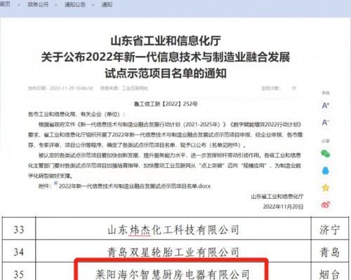 12 月 12 日,工信部公布 2022 年度国家中小企业公共服务示范平台名单,青岛海尔智能技术研发有限公司(海尔智家HOPE平台)荣登榜单。 这是今年以来,海尔智家HOPE平台继获选中国科协科创中国十大产学研融通组织...