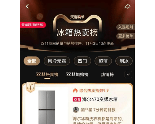 双11正在火热进行中。每年这个时候,不仅是对消费者手速的考验,更是对消费者脑力的试炼:买什么才能不踩坑?谁家的质量更好?哪家更值得买?如果能有一份标准答案抄就好了。天猫热卖榜来了!据悉,天猫热卖榜综合了商品...